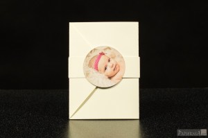 Zaproszenie kopertowe z podwójną wkładką drukowaną - możliwość zadruku tekstem, zdjęciem dziecka lub grafiką - do wyboru.